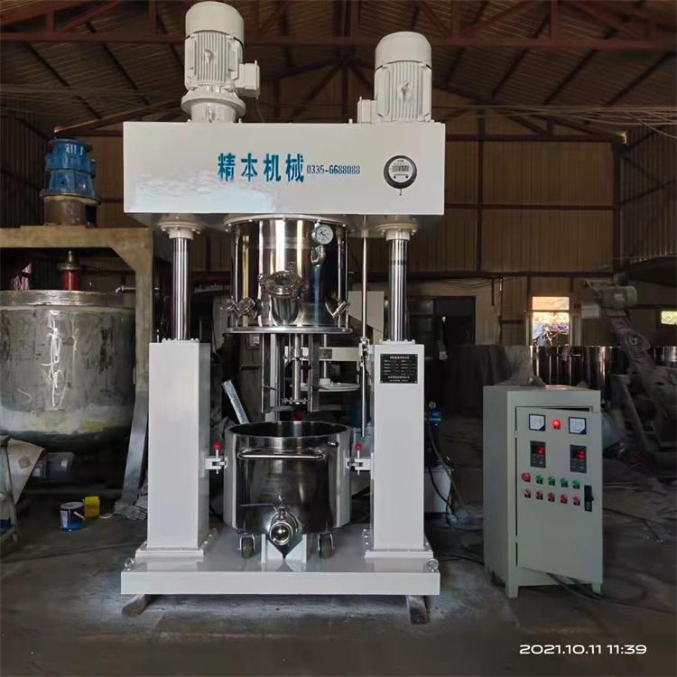 雙行星攪拌機(jī)根據(jù)行星運動軌跡設(shè)計,攪拌結(jié)構(gòu)有低速攪拌器、高速攪拌器、以及相應(yīng)的刮板裝置組合而成。雙行星攪拌機(jī)的雙組低速攪拌器自轉(zhuǎn)的同時繞著軸心進(jìn)行公轉(zhuǎn),而且低速攪拌器的形式根據(jù)不同的物料粘度和生產(chǎn)工藝選擇不同的攪拌形式,常見的攪拌形式包括槳葉式、麻花式、爪式、框式等結(jié)構(gòu),具備良好的混合、反應(yīng)、捏合、溶解的作用;高速分散器由多層具備極高線速度的鋸齒狀分散盤組成,它同樣在高速自轉(zhuǎn)的同時繞著軸心進(jìn)行公轉(zhuǎn),能夠?qū)⒎哿希ㄖ鷦┛焖俚姆稚⒌綕{料里,具備很強(qiáng)的分散作用;刮板裝置根據(jù)客戶實際的生產(chǎn)工況選配。