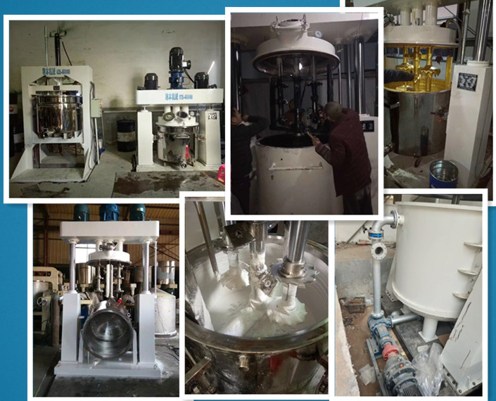 是一種多功能、強制性攪拌機,釜內(nèi)有三根不同形式的攪拌器,其中一根低速攪拌器在繞釜體軸線轉(zhuǎn)動,其余兩根高速攪拌裝置又以不同的轉(zhuǎn)速繞自身軸線高速自轉(zhuǎn),使物料在釜內(nèi)作復(fù)雜的運動,受到強烈的剪切和混合。設(shè)備內(nèi)山形刮壁刀繞釜體軸線轉(zhuǎn)動,將粘在壁上和底部的原料刮出參與混合,使其效果更為理想。設(shè)備密封性好,可電加熱(水冷卻)抽真空,具有良好的排氣除泡。強力分散機缸蓋可液壓升降,缸體可自由移動,操作十分方便。強力分散機攪拌器的形式,根據(jù)物料要求可為多層槳葉式、框式、蝴蝶式、葉輪式等。攪拌機通常配套系列液壓擠出機,以實現(xiàn)膏狀物料的擠出。